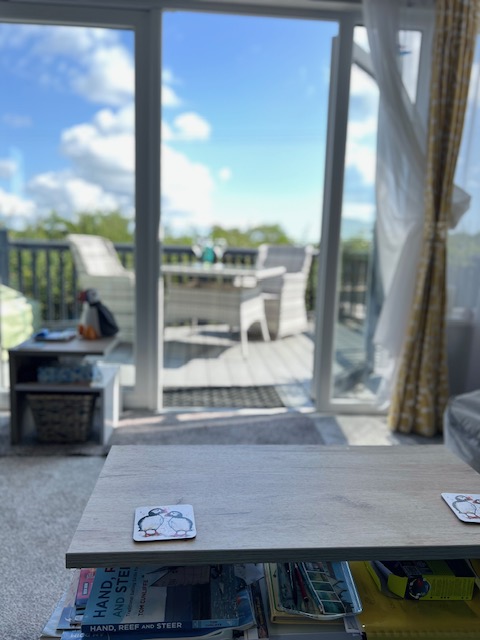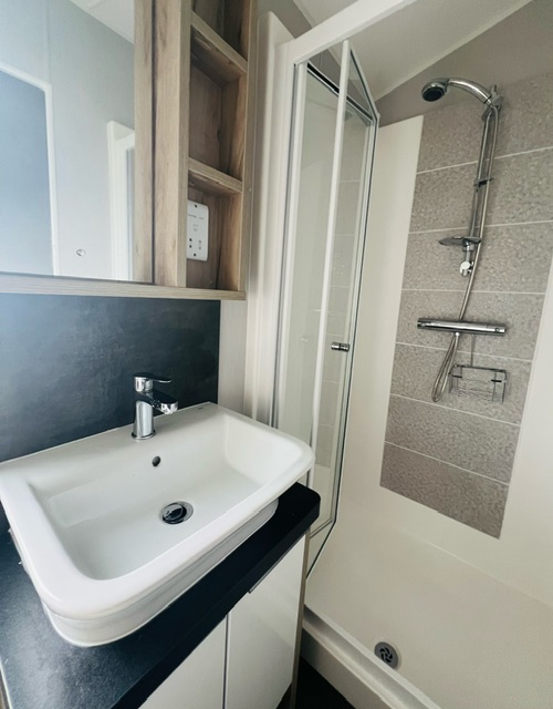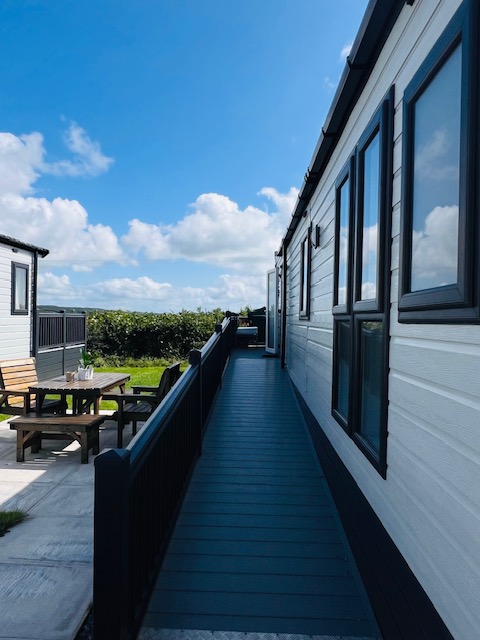 Enter the sunlit haven that is the lounge from your deck, through the eye catching Apex glazed front with floor to ceiling windows, taking in the extra space the 8.5ft ceilings provide. Relax on the cushy sofas (one of which pulls out into a bed) in front of the TV for a movie night after exploring the county.